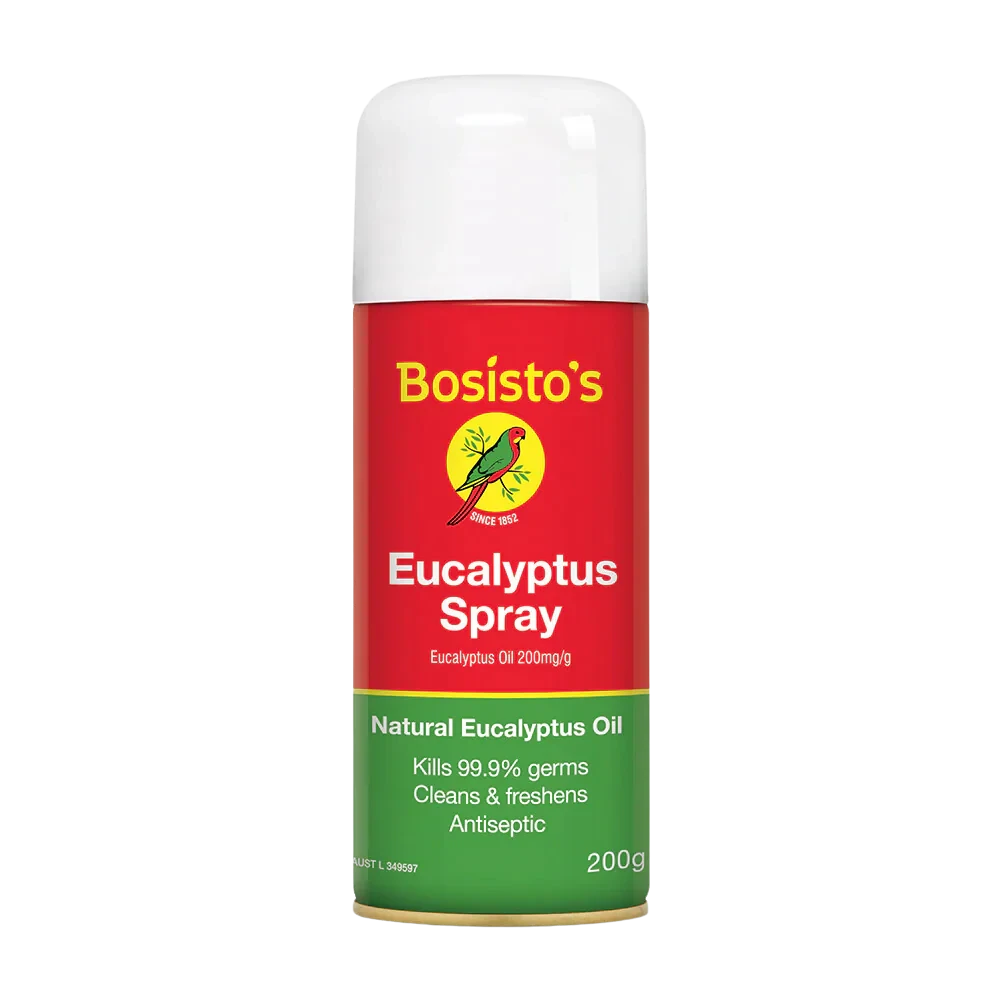 Antiseptic: For minor wounds such as cuts, scratches and insect bites, spray the affected area holding the can 15cm from skin. Repeat as required.Bosisto’s Eucalyptus Spray 200g (310) is a versatile product that offers a range of benefits, making it a must-have for every household. This powerful antiseptic spray is designed to provide soothing relief for minor wounds such as cuts, scratches, and insect bites.With Bosisto’s Eucalyptus Spray, you can effectively treat and clean these small injuries with ease. The spray is simple to use – just hold the can 15cm from the affected area and spray. It quickly alleviates discomfort and promotes healing, leaving the skin feeling refreshed and revitalized.The key ingredient in this incredible spray is eucalyptus oil. Eucalyptus is renowned for its natural antibacterial and antiseptic properties. It has been used for centuries to treat various skin conditions and infections. Bosisto’s Eucalyptus Spray harnesses these therapeutic qualities of eucalyptus oil, offering a gentle and effective remedy for minor wounds.Not only does this spray provide antiseptic benefits, but it also offers a delightful aroma. The scent of eucalyptus is fresh and invigorating, providing a refreshing burst of energy. It can help to clear the nasal passages and promote a sense of well-being.This convenient 200g can of Bosisto’s Eucalyptus Spray is perfect for keeping in your medicine cabinet, first aid kit, or handbag. Its compact size ensures that it is easily portable, allowing you to have it on hand whenever you need it. Whether you’re at home, at work, or on-the-go, this spray is a reliable companion for your first aid needs.Bosisto’s Eucalyptus Spray is suitable for the whole family, including children aged two years and above. It is dermatologically tested, ensuring it is safe and gentle on the skin. You can have peace of mind knowing that you are using a trusted product that has been manufactured to the highest standards.For effective, soothing relief for minor wounds and insect bites, look no further than Bosisto’s Eucalyptus Spray 200g (310). Experience the healing power of eucalyptus oil in a convenient and easy-to-use form.