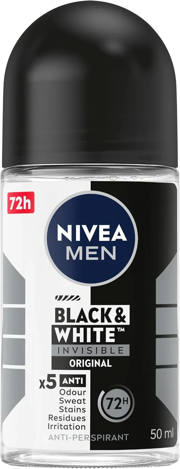 NIVEA MEN Black & White Invisible Original Anti-Perspirant Roll-On Deodorant 50mL – Each