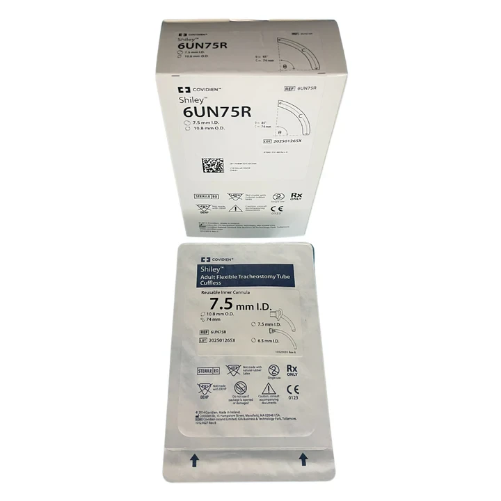These clinician-inspired enhancements include the taper-shaped TaperGuard™ cuff. The TaperGuard™ cuff may help protect the lungs and reduce tracheal impact by reducing fluid leakage by 99% and exerting 18.6% less lateral wall pressure on the trachea.1 In addition, TaperGuard™ cuff technology helps improve a clinician’s ability to provide mechanical ventilation with the ability to titrate ventilator air leak that is 65% greater than with earlier-generation Shiley™ tubes.Shiley™ flexible tubes were designed with larger inner diameters, compared to earlier Shiley™ tracheostomy tubes. Airflow around the outer cannula when the cuff is deflated has increased by an average of 242%. It has been found that improved airflow may reduce the work of breathing required to speak and wean from a tracheostomy tube.Other enhancements in the new family of Shiley™ flexible tracheostomy tubes include color-coding by size (for disposable inner cannula products only), an expanded range of sizes, a soft material made with a non-DEHP plasticizer, a clear flange and a design that make it possible to ventilate with or without an inner cannula. Product CodeProduct DescriptionI.D.4UN65RShiley™ Flexible Tracheostomy Tube Cuffless, Reusable Inner Cannula5.5 mm5UN70RShiley™ Flexible Tracheostomy Tube Cuffless, Reusable Inner Cannula6.0 mm6UN75RShiley™ Flexible Tracheostomy Tube Cuffless, Reusable Inner Cannula6.5 mm7UN80RShiley™ Flexible Tracheostomy Tube Cuffless, Reusable Inner Cannula7.0 mm8UN85RShiley™ Flexible Tracheostomy Tube Cuffless, Reusable Inner Cannula7.5 mm9UN90RShiley™ Flexible Tracheostomy Tube Cuffless, Reusable Inner Cannula8.0 mm10UN10RShiley™ Flexible Tracheostomy Tube Cuffless, Reusable Inner Cannula9.0 mm