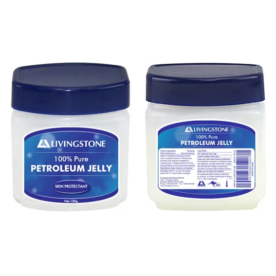 Livingstone Petroleum Jelly (also known as White soft Paraffin) provides a bland, neutral, non-irritant protective ointment and lubricant for dry or chapped skin.